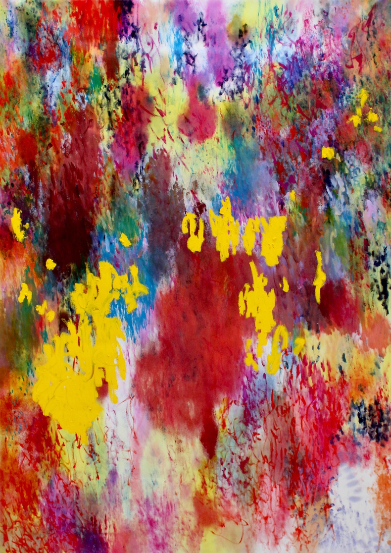 SARAH SMUTS-KENNEDY presents new abstract paintings developed through a process-oriented practice that combines gestural mark-making with layered surfaces and chromatic modulation. “My practice is grounded in listening as a primary method. I approach painting not as image-making, but as the construction of conditions in which movement, structure, and coherence can emerge over time. Gesture functions as a structuring force rather than an expressive one, organising complexity into fields that stabilise through cycles of disruption and resolution. Across series, works operate as interconnected systems rather than isolated images. I understand painting as a tool — a site of attunement influenced by artists such as Agnes Martin and Emma Kunz, whose works function as instruments for alignment. Ultimately, the work seeks to generate conditions of “Alive-ing”: sustained states of dynamic coherence.”