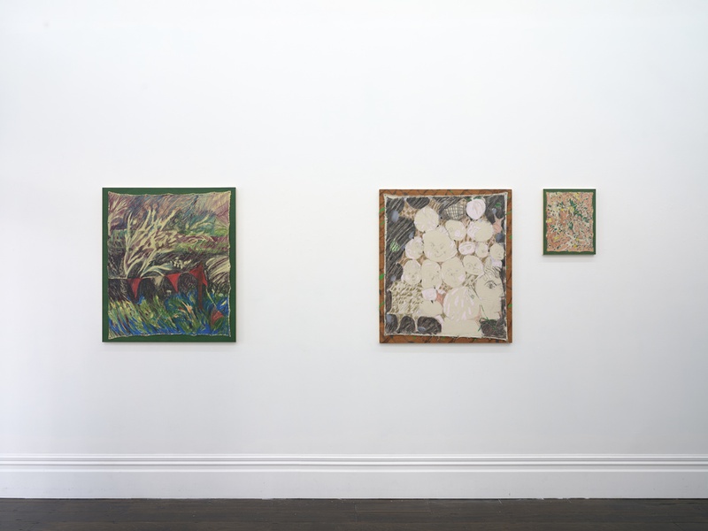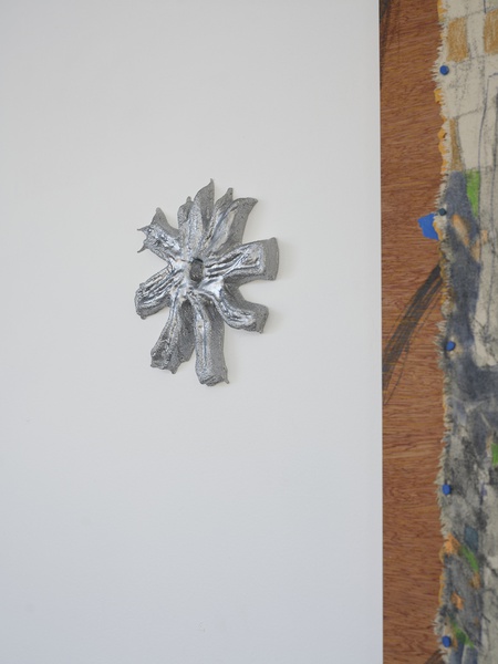 Methods of presentation often reference the process of making the works and incorporate a studio logic of temporary fixture, where the possibility of being untacked, rearranged, or otherwise is retained.