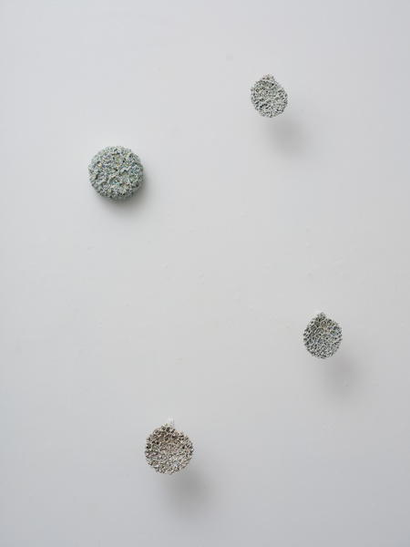 Works in this exhibition are very sculptural. PLease view the install images below to get side views and detail images.