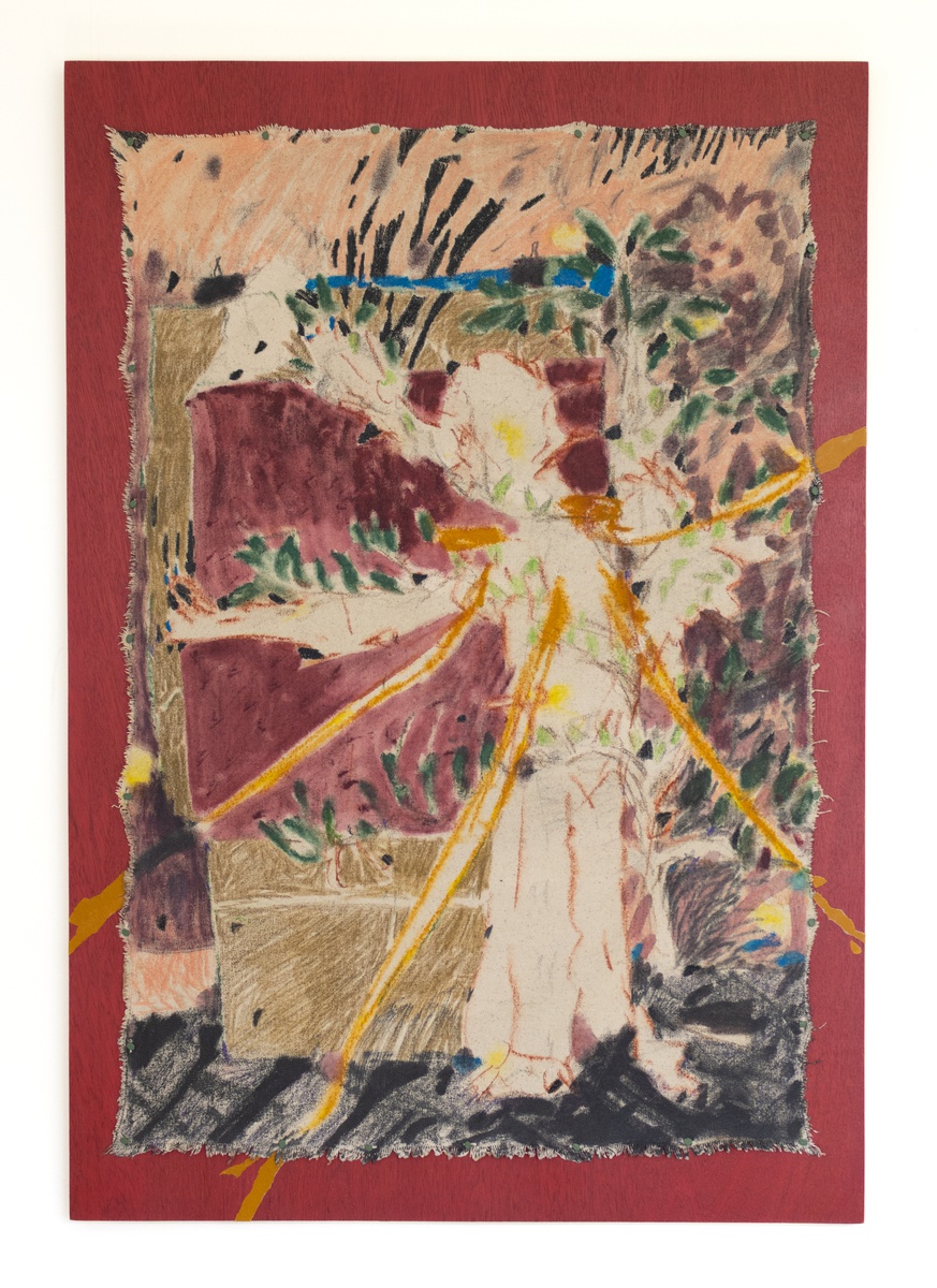 × + − Georgia Arnold Tryhard / Espalier 2025 View Georgia Arnold’s Profile Exhibited: Retreat 5th Nov 2025 – 29th Nov 2025 mixed media drawing on canvas, tacks, wooden panel 870 × 600mm Enquire about this work