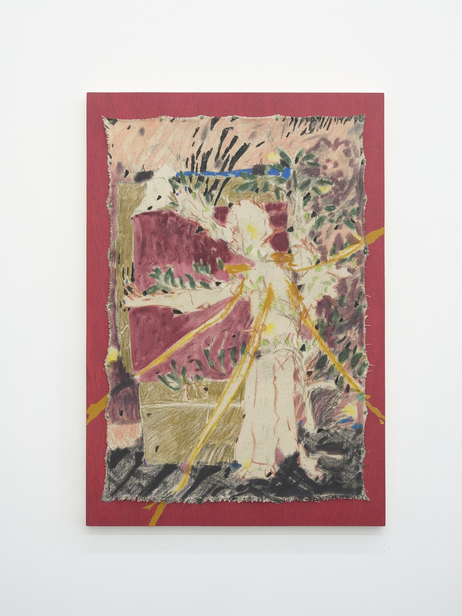 × + − Georgia Arnold Tryhard / Espalier 2025 View Georgia Arnold’s Profile Exhibited: Retreat 5th Nov 2025 – 29th Nov 2025 mixed media drawing on canvas, tacks, wooden panel 870 × 600mm This work is sold